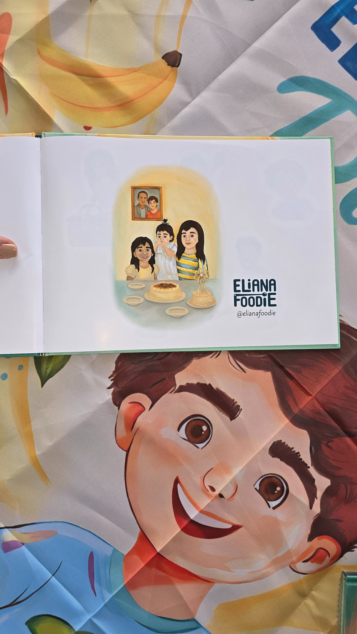 Uno de los detalles más especiales es una ilustración basada en una foto familiar: le di la referencia a Natalia, mi ilustradora, y ella convirtió ese instante en arte. Gracias a su sensibilidad, hoy existe un retrato ilustrado de los cinco integrantes de mi familia dentro del libro.