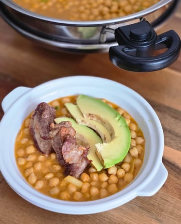 Aparte, a veces preparo chicharrón y aguacate para acompañar, aunque la verdad, estos garbanzos por sí solos ya son una comida completa. En algunos hogares se sirven con arroz, en otros solos, pero en todos reconfortan el alma.